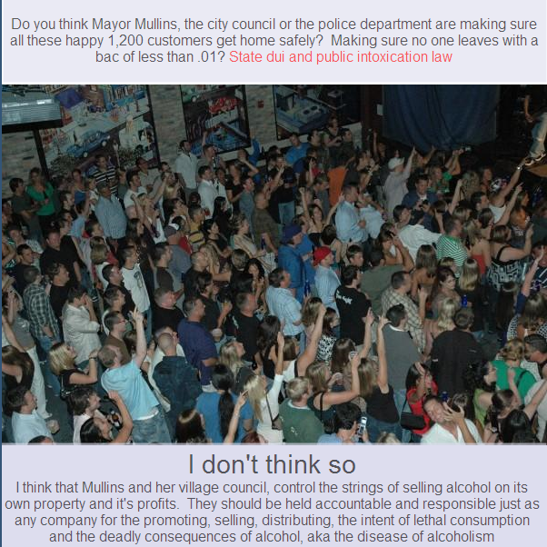 Is it the real wish of the Palatine people or any level headed person, to have 25,000 drinks served in down town Palatine and let these people drive home, with the risk of killing some one?
